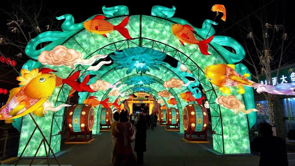 氛圍主題分為兩大篇章,第一個(gè)以莫高窟的壁畫和敦煌元素組成的“紋話敦煌”。第二部分由天街燈市組成“十二辰彩”,將敦煌傳統(tǒng)的壁畫用聲光電技術(shù)呈現(xiàn)出來。增加游戲互動(dòng)環(huán)節(jié)、設(shè)置NPC等讓游客能夠沉浸式體驗(yàn)燈會(huì)。