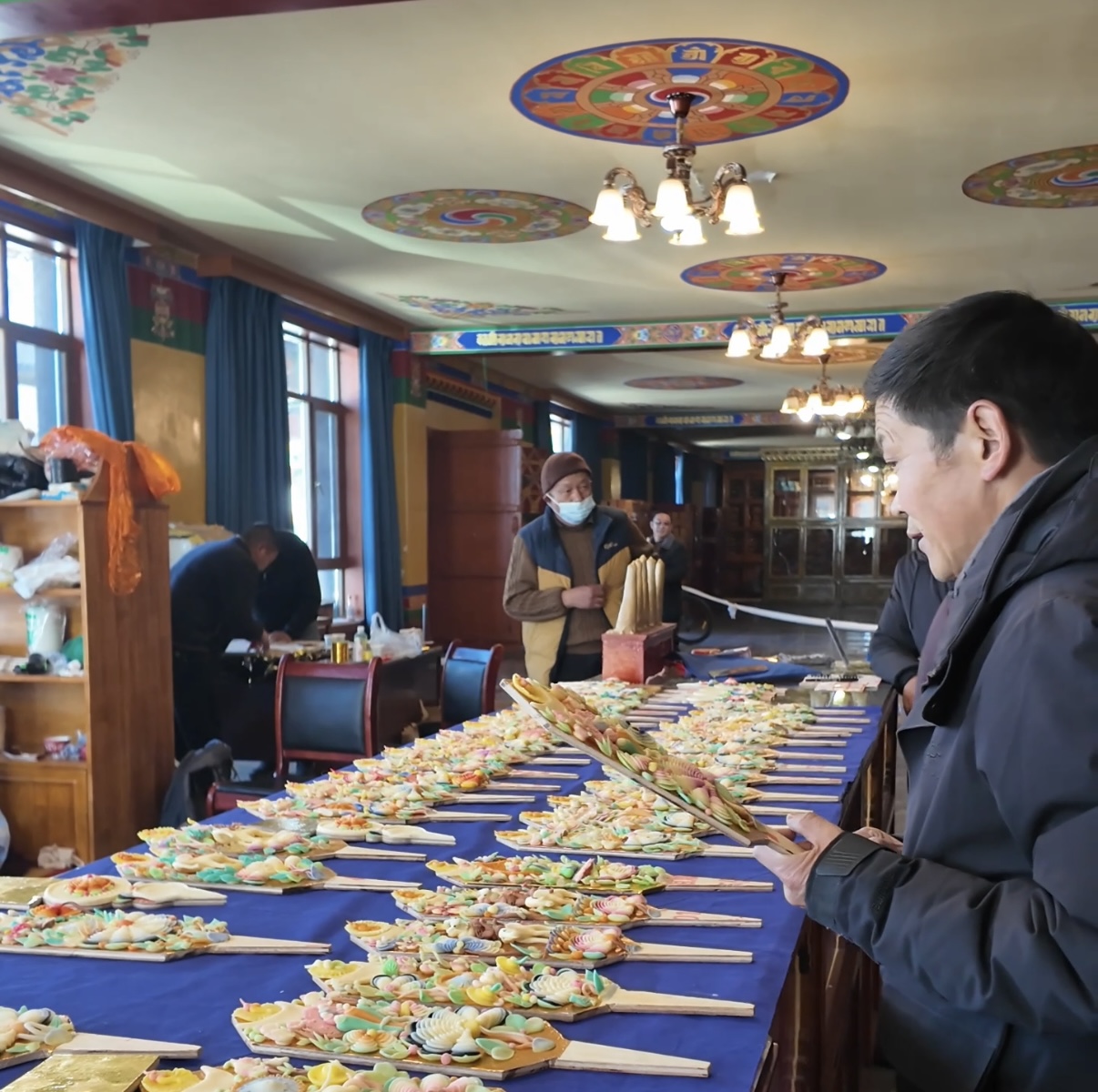 “哪種圖案寓意更好?”“‘八吉祥徽’和‘和睦四瑞’能搭配嗎?”問題接連不斷,倫珠忙得幾乎腳不沾地。他介紹,合作社于2025年11月成立,匯集了30多位手藝精湛的老師傅。為應(yīng)對(duì)新年需求,大家提前一個(gè)月便開始制作,沒想到開售僅3天,1500多對(duì)酥油花便已售出,備貨幾乎告罄。