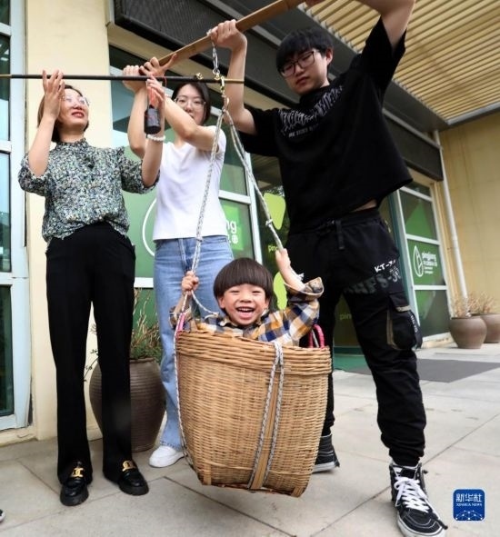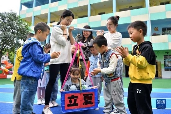 5月5日,河南省濟源市第一幼兒園的孩子體驗立夏習(xí)俗。