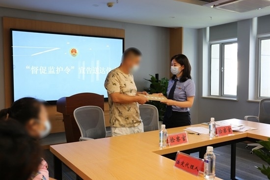 檢察官對失職家長送達(dá)督促監(jiān)護(hù)令。程珊/攝