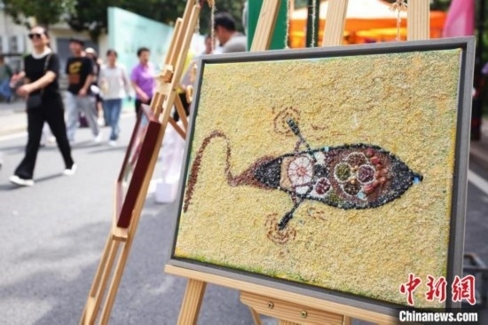 各種谷物組成一幅畫迎接新生。泱波 攝