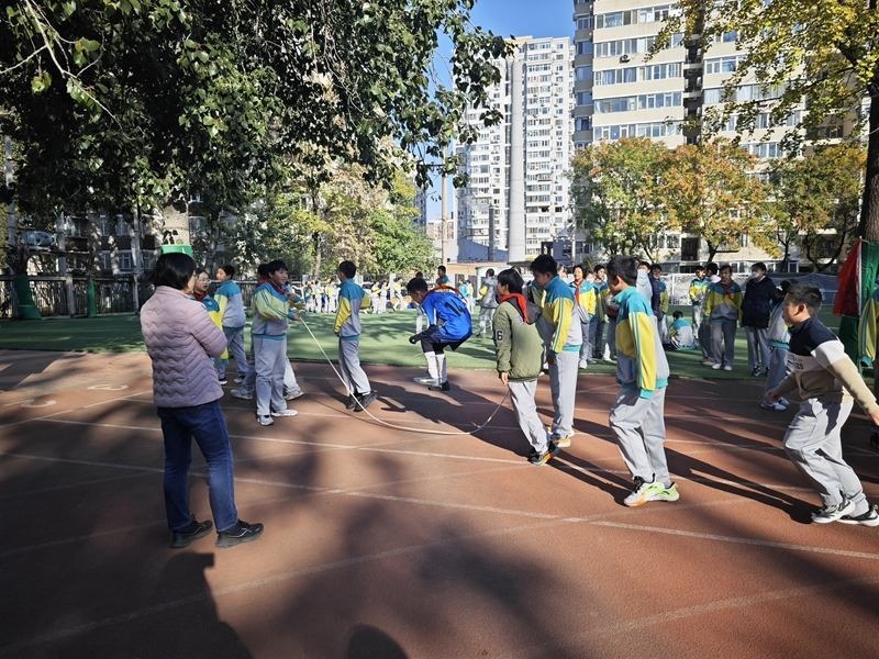 為了引導(dǎo)孩子們課間走出教室,北醫(yī)附小根據(jù)季節(jié)設(shè)計大型集體項目,比如秋季開展的跳長繩,老師們也參與進(jìn)來搖繩,帶動更多孩子參加體育鍛煉?!白寣W(xué)生在課間得到充分休息、活動,才能保證學(xué)生的課堂狀態(tài),從而促進(jìn)課堂教育教學(xué)質(zhì)量提升?!碧飮⒈硎?。