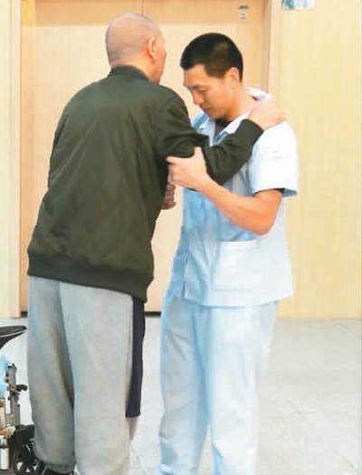 “比如在攙扶老陸進行康復訓練時,我會說‘老陸,雄起’來鼓勵他。晚上睡前,我也會和他聊天,告訴他‘有任何需要我都會在身旁’?!焙喆蟾缯f。