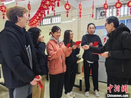 泰國留學生趙思妮說,最讓她開心又興奮的是可以在吃年夜飯的時候,領到學校發(fā)的新年“紅包”,寓意安康吉祥、幸福美好。
