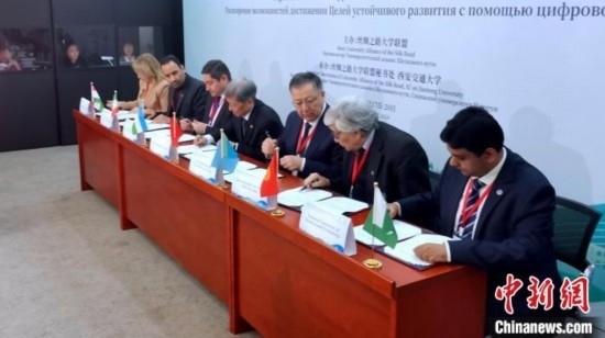 活動(dòng)現(xiàn)場,西安交通大學(xué)、哈薩克斯坦國立大學(xué)、伊朗科技大學(xué)、塔什干信息技術(shù)大學(xué)、吉爾吉斯國際大學(xué)、巴基斯坦國立科技大學(xué)、塔吉克斯坦國立大學(xué)共同簽署“絲綢之路大學(xué)聯(lián)盟”內(nèi)上海合作組織成員國《高等教育合作協(xié)議》。在該合作協(xié)議框架下,各方達(dá)成首個(gè)學(xué)分互認(rèn)項(xiàng)目的共識,即共同建設(shè)絲綢之路大學(xué)聯(lián)盟“可持續(xù)發(fā)展目標(biāo)實(shí)現(xiàn)路徑在線課程”。