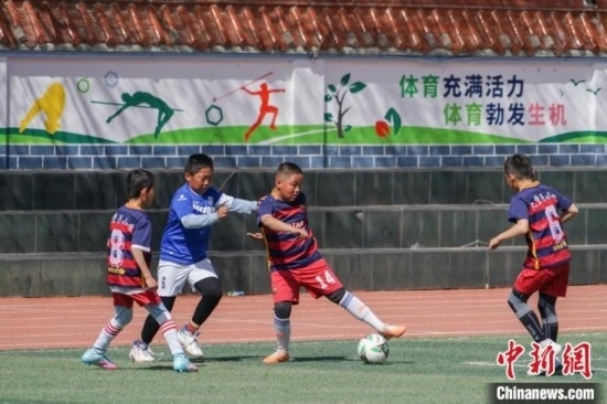 圖為在西寧市大堡子小學,學生進行足球特色大課間展示。馬銘言 攝