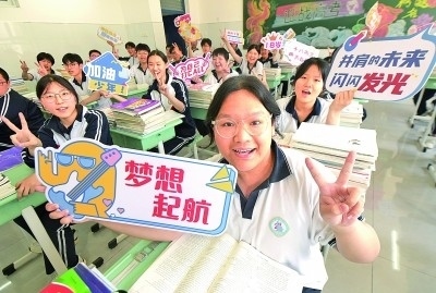 高考臨近,各地多所高中舉辦特色活動,幫助高三學(xué)生釋放壓力,放松心情,以樂觀、自信的心態(tài)迎戰(zhàn)高考。圖為5月14日,河北省石家莊新樂市第四中學(xué)高三的學(xué)生在教室為自己加油鼓勁。新華社發(fā)