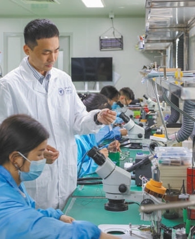 浙江大學(xué)衢州研究院科研人員在企業(yè)指導(dǎo)醫(yī)療器件表面涂層的產(chǎn)業(yè)化制備。浙江大學(xué)融媒體中心供圖