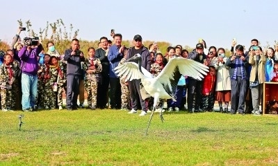 在河北秦皇島市鴿子窩公園,國(guó)家保護(hù)鳥(niǎo)類被放歸自然時(shí),市民紛紛拍照記錄。新華社發(fā)