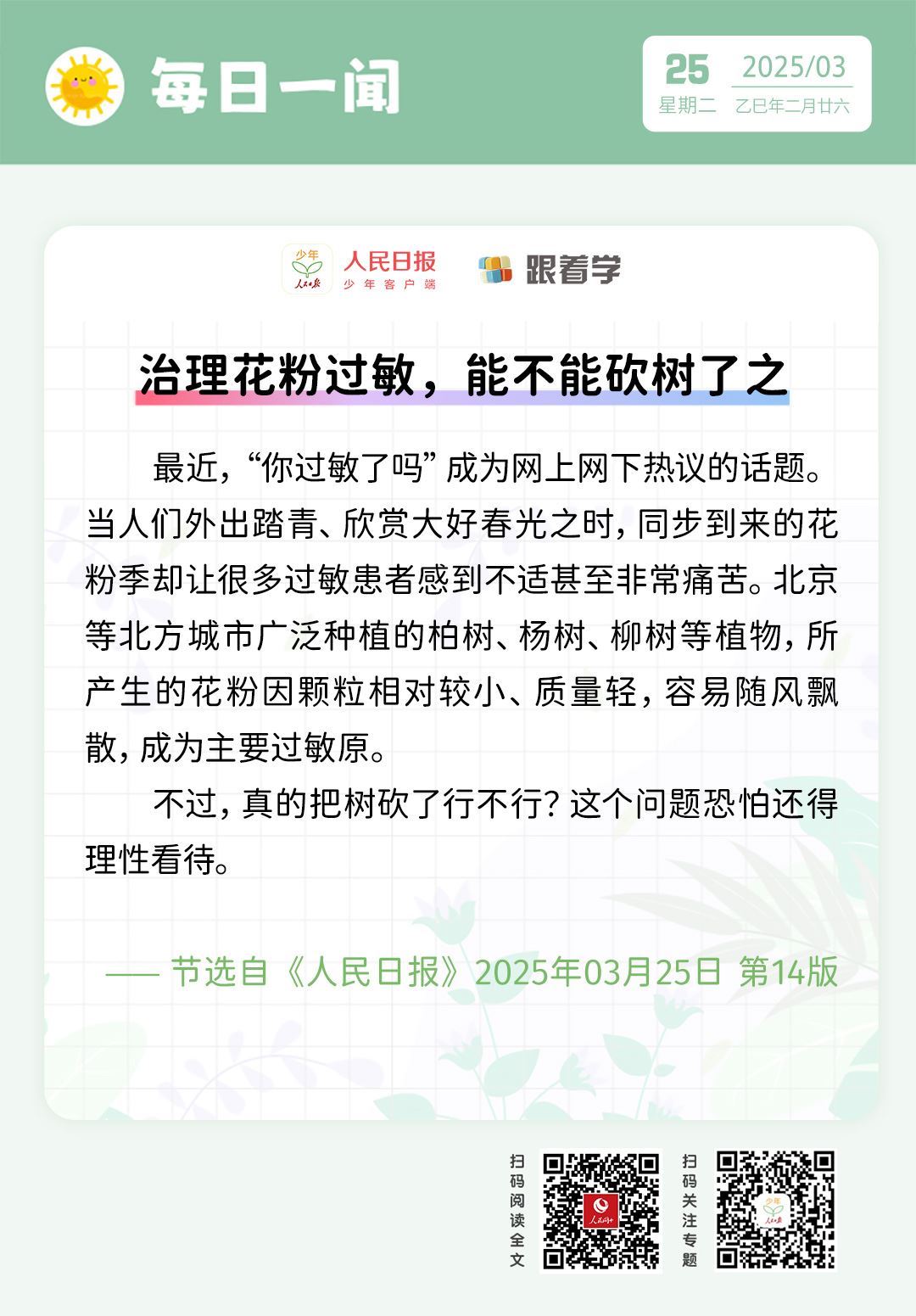每日一聞丨治理花粉過敏,能不能砍樹了之
