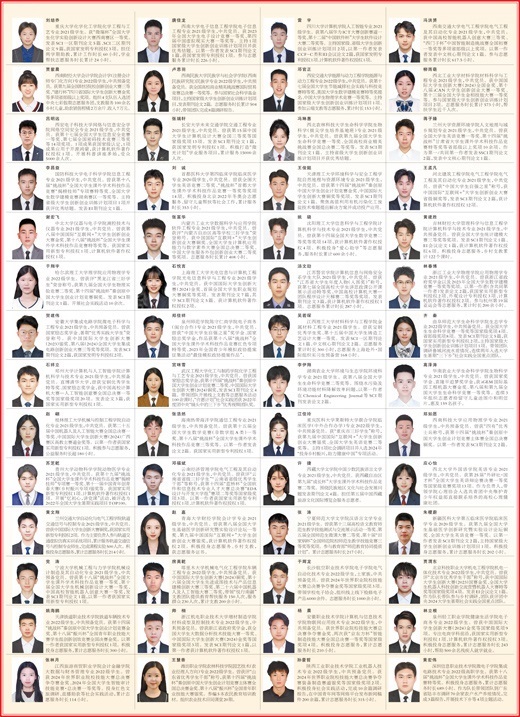 經(jīng)過嚴(yán)格選拔和評審,全國12萬名本專科學(xué)生榮獲2023—2024學(xué)年度本專科生國家獎學(xué)金。以下100名學(xué)生,是本專科生國家獎學(xué)金獲獎學(xué)生中的優(yōu)秀代表。希望廣大青年學(xué)生以他們?yōu)榘駱樱庐?dāng)排頭兵和生力軍,在推進(jìn)強(qiáng)國建設(shè)、民族復(fù)興偉業(yè)中展現(xiàn)青春作為、彰顯青春風(fēng)采、貢獻(xiàn)青春力量,奮力書寫為中國式現(xiàn)代化挺膺擔(dān)當(dāng)?shù)那啻浩隆?/p>