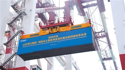 山東省港口集團(tuán)·海陸馬士基亞洲孟加拉直達(dá)航線首航青島港現(xiàn)場。資料圖片