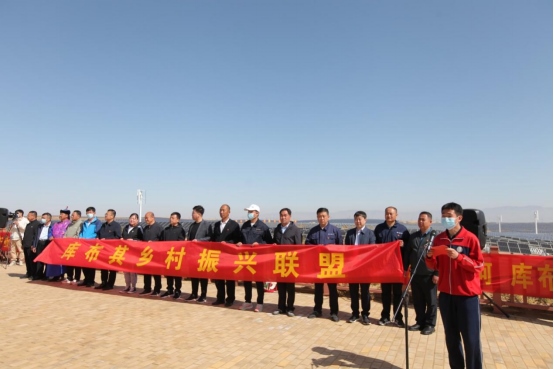 第18屆庫(kù)布其植樹(shù)節(jié)同步翻開(kāi)了“鞏固脫貧攻堅(jiān)成果、推動(dòng)鄉(xiāng)村振興發(fā)展”的新篇章。在鄂爾多斯、杭錦旗各級(jí)黨委政府的領(lǐng)導(dǎo)下,億利集團(tuán)攜手鄂爾多斯市50多家中小企業(yè)、杭錦旗工商聯(lián)、國(guó)家稅務(wù)總局杭錦旗稅務(wù)局和相關(guān)的企業(yè)、公益機(jī)構(gòu)和社會(huì)愛(ài)心人士,聯(lián)合庫(kù)布其沙區(qū)的杭錦淖爾村、刀圖嘎查、沙日召嘎查、圖古日格嘎查、白音補(bǔ)拉嘎查、查干布拉嘎查、格更召嘎查,成立庫(kù)布其鄉(xiāng)村振興聯(lián)盟(以下簡(jiǎn)稱(chēng)“聯(lián)盟”),活動(dòng)現(xiàn)場(chǎng)宣讀了《庫(kù)布其鄉(xiāng)村振興聯(lián)盟宣言》。聯(lián)盟將致力于重點(diǎn)推進(jìn)分布式光伏發(fā)電項(xiàng)目建設(shè),打造黃河文化、沙漠文化、民俗文化相結(jié)合的文化旅游村,進(jìn)一步發(fā)掘古如歌文化,建設(shè)好沙漠綠色生態(tài)公園,高質(zhì)量推動(dòng)板下現(xiàn)代農(nóng)牧產(chǎn)業(yè)發(fā)展,同時(shí)依托億利在庫(kù)布其打造起來(lái)的一二三產(chǎn)業(yè)融合發(fā)展的產(chǎn)業(yè)平臺(tái),切實(shí)推動(dòng)庫(kù)布其周邊村嘎查鄉(xiāng)村振興。國(guó)家稅務(wù)總局杭錦旗稅務(wù)局在活動(dòng)現(xiàn)場(chǎng)宣傳了稅務(wù)支持服務(wù)營(yíng)商環(huán)境改善、減稅降費(fèi)、降碳擴(kuò)綠等惠民惠企政策,營(yíng)造“稅企村”共同助力黃河流域生態(tài)保護(hù)與高質(zhì)量發(fā)展、推動(dòng)鄉(xiāng)村振興的新格局。