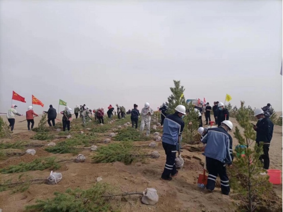 北疆新聞網(wǎng)、北疆新聞APP、北疆云消息(張博)黃河中上游沿岸,谷雨時(shí)節(jié),在庫(kù)布其沙漠和騰格里沙漠腹地,植樹(shù)擴(kuò)綠正隨著光伏治沙降碳而延伸,描繪著藍(lán)綠交織、水沙和諧、鄉(xiāng)村振興的工筆畫(huà)。4月22日是第53個(gè)世界地球日,也是第18屆庫(kù)布其植樹(shù)節(jié),蒙西基地庫(kù)布其200萬(wàn)千瓦光伏治沙項(xiàng)目現(xiàn)場(chǎng)、甘肅武威50萬(wàn)千瓦光伏治沙項(xiàng)目現(xiàn)場(chǎng)同步舉行大型植樹(shù)紀(jì)念活動(dòng),主題為“光伏治沙護(hù)河,庫(kù)布其降碳擴(kuò)綠與鄉(xiāng)村振興”,正式啟動(dòng)庫(kù)布其“十四五”1億棵碳匯林工程第二期種植。億利集團(tuán)董事長(zhǎng)王文彪表示:“‘十四五’期間,我們將在黃河流域的庫(kù)布其沙漠、烏蘭布和沙漠、騰格里沙漠的億利治沙區(qū)域建設(shè)上百公里治沙護(hù)河碳匯林帶,2021年已如期完成2000萬(wàn)棵種植任務(wù),2022年將繼續(xù)通過(guò)‘政策+產(chǎn)業(yè)+公益’的模式,實(shí)施光伏板下種植和沙漠生態(tài)種植,確保完成2000萬(wàn)棵種植任務(wù)。億利庫(kù)布其治沙科技和經(jīng)驗(yàn)?zāi)J揭沧呱狭宋鞑啬乔吆吆0蔚貐^(qū),成功種活了近40萬(wàn)株鄉(xiāng)土樹(shù)種,我們將加快推動(dòng)那曲城鎮(zhèn)植樹(shù)關(guān)鍵技術(shù)研發(fā)與綠化模式示范項(xiàng)目成果的規(guī)?;茝V。”活動(dòng)現(xiàn)場(chǎng)全面啟動(dòng)了國(guó)家在庫(kù)布其沙漠規(guī)劃的退化林修復(fù)工程、蒙西基地2GW光伏治沙和甘肅武威500兆瓦光伏治沙項(xiàng)目板下生態(tài)種植工程、杭錦旗林草局和團(tuán)委保護(hù)母親河工程、螞蟻森林、大鉦資本庫(kù)布其沙漠雙碳公益林、鄂爾多斯中小企業(yè)庫(kù)布其公益林、杭錦旗工商聯(lián)林、杭錦旗稅務(wù)碳匯林等多個(gè)生態(tài)植樹(shù)項(xiàng)目。