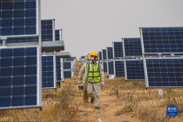 一匹占地130多萬平方米的沙漠“駿馬”橫臥在內(nèi)蒙古自治區(qū)庫布其沙漠之中,這是位于達拉特光伏發(fā)電應用領跑基地中、由近20萬塊光伏板組成的“駿馬電站”。該電站采用“林光互補”模式,板上發(fā)電、板下種植,在開發(fā)利用庫布其沙漠豐富太陽能資源的同時,推動沙漠生態(tài)治理。