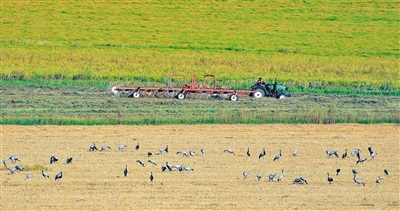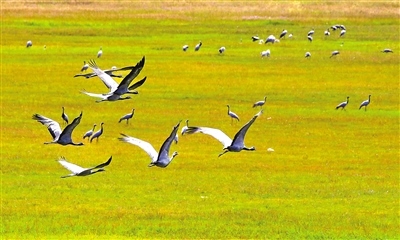 在這優(yōu)美畫卷中,蓑羽鶴就是額侖草原上的精靈,給草原平添了生命的活力。蓑羽鶴是鶴類中個體最小者,對生態(tài)環(huán)境質(zhì)量要求很高。從之前的形單影只,到現(xiàn)在的成群結(jié)隊,蓑羽鶴對額侖草原的青睞,足以說明了額侖草原生態(tài)環(huán)境的保護成效。