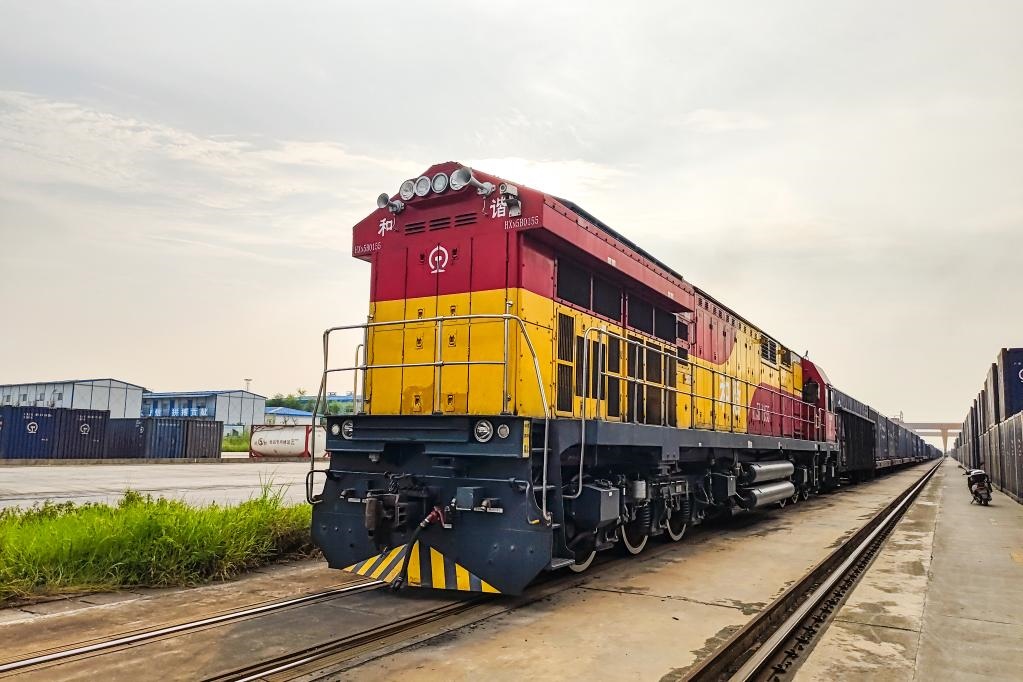圖為中越跨境班列從南寧國際鐵路港駛出。(中國鐵路南寧局集團有限公司供圖)