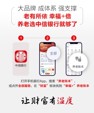 面對萬億規(guī)模個人養(yǎng)老金新藍(lán)海,銀行、基金、保險等各類型金融機構(gòu),正加速布局。作為國內(nèi)最早推出年長客戶專屬服務(wù)的商業(yè)銀行,中信銀行始終關(guān)注并積極落實“應(yīng)對人口老齡化”的國家戰(zhàn)略,打造了包含“一個賬戶、一套產(chǎn)品、一個賬本、一套服務(wù)、一支隊伍、一份報告”六大支撐的養(yǎng)老金融服務(wù)體系,并推出“幸福+”養(yǎng)老賬本一站式養(yǎng)老金融服務(wù)平臺,以實際行動響應(yīng)國家號召、履行社會責(zé)任、助力第三支柱個人養(yǎng)老金制度實施落地。