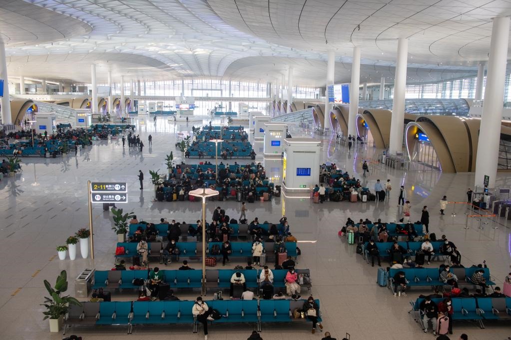 1月6日,旅客在2022年9月啟用的杭州西站候車(chē)大廳內(nèi)候車(chē)。新華社記者 江漢 攝