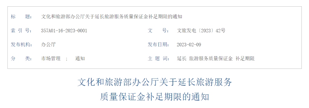 旅游服務(wù)質(zhì)量保證金補(bǔ)足期限延至2024年3月31日
