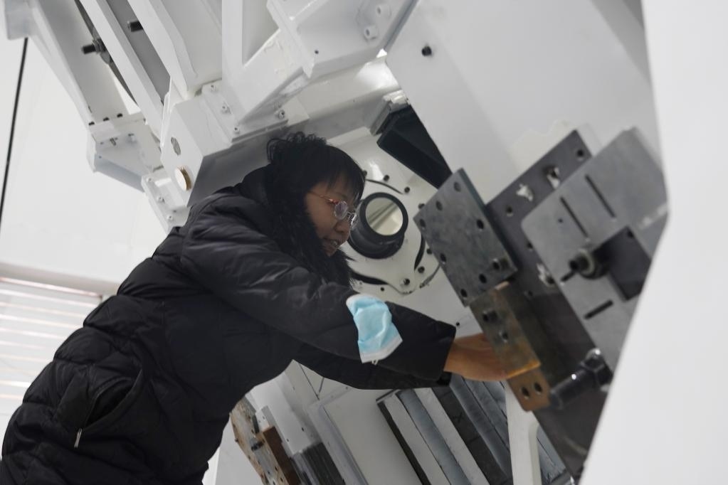 4月8日,中國(guó)科學(xué)院國(guó)家天文臺(tái)懷柔太陽(yáng)觀測(cè)基地總工程師王東光在AIMS圓頂內(nèi)工作。(新華社記者陳杰 攝)
