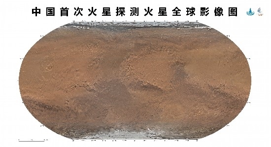 人民網(wǎng)北京4月24日電 (記者趙竹青、王震)記者從國(guó)家航天局獲悉,4月24日,在2023年“中國(guó)航天日”主場(chǎng)活動(dòng)啟動(dòng)儀式上,國(guó)家航天局和中國(guó)科學(xué)院聯(lián)合發(fā)布了中國(guó)首次火星探測(cè)火星全球影像圖。本次發(fā)布的影像圖為彩色,包括按照制圖標(biāo)準(zhǔn)分別制作的火星東西半球正射投影圖、魯賓遜投影圖和墨卡托投影加方位投影圖,空間分辨率為76米,將為開(kāi)展火星探測(cè)工程和火星科學(xué)研究提供質(zhì)量更好的基礎(chǔ)底圖。天問(wèn)一號(hào)任務(wù)獲取的包括影像圖在內(nèi)的一批科學(xué)探測(cè)數(shù)據(jù),將為人類(lèi)深入認(rèn)知火星作出中國(guó)貢獻(xiàn)。