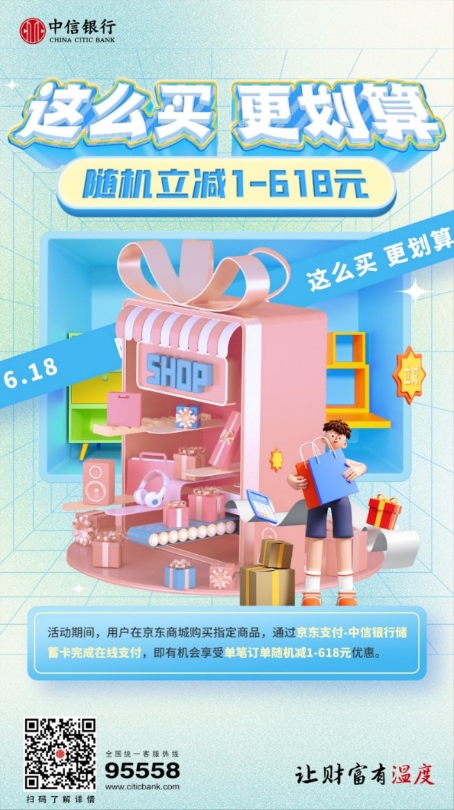 “618”作為年度消費盛宴的重要節(jié)日,抖音、京東等各大電商均在積極行動,加大優(yōu)惠力度。中信銀行借記卡以“618促消費”為抓手,充分發(fā)揮借記卡產品在電商消費支付環(huán)節(jié)的作用,推出系列支付優(yōu)惠活動,讓用戶在開心消費的同時買得更便宜,享受真實惠。