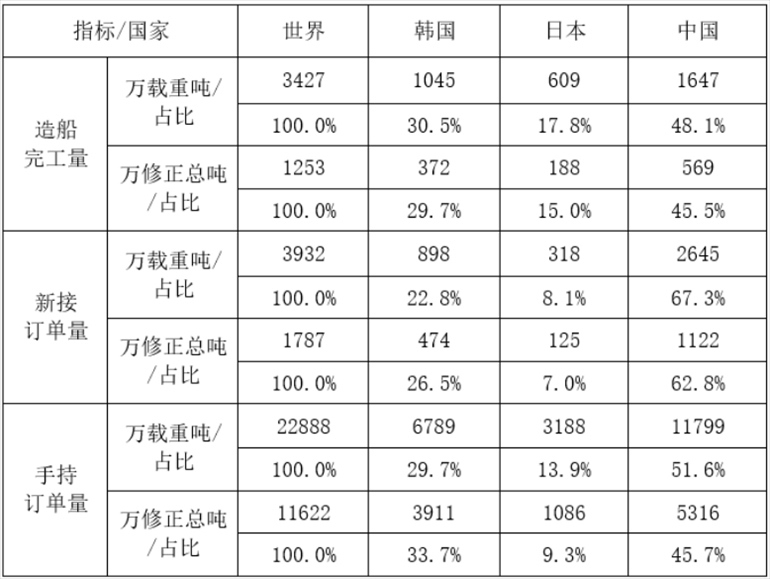 另據(jù)數(shù)據(jù)顯示,1-5月,全國造船完工量569萬修正總噸,同比增長(zhǎng)29%;新承接船舶訂單量1122萬修正總噸,同比增長(zhǎng)24.2%。截至5月底,手持船舶訂單量5316萬修正總噸,同比增長(zhǎng)27.4%。按修正總噸計(jì),中國造船完工量、新接訂單量、手持訂單量分別占世界市場(chǎng)份額的45.5%、62.8%和45.7%。