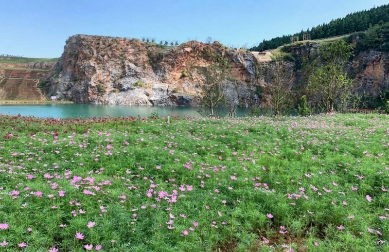 靈山生態(tài)文化旅游區(qū)已打造出繽紛的山林景觀。景區(qū)內(nèi),金色梯田美不勝收,拾階而上,高山草甸順著山勢(shì)起伏;一棵“孤獨(dú)的樹”矗立山巔,俯瞰遠(yuǎn)處的油菜花海、采礦舊址;穿越千株櫻園、桃林蜿蜒直達(dá)谷底,“礦坑花園”已成為絕佳的拍照打卡地。