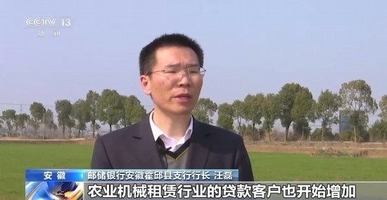 郵儲銀行安徽霍邱縣支行行長 汪磊:隨著機(jī)械強(qiáng)農(nóng)的推進(jìn),農(nóng)業(yè)服務(wù)公司、農(nóng)業(yè)機(jī)械租賃行業(yè)的貸款客戶也開始增加,今年這類新型客戶貸款金額同比增幅超300%。