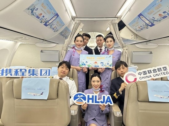 當(dāng)日,飛抵佛山的“攜程號”是中聯(lián)航彩繪機隊的第15位成員,在客艙內(nèi),身著全新制服的乘務(wù)組精心策劃了豐富的客艙活動并為首航旅客分發(fā)包含“攜程號”創(chuàng)意來源“千里江山圖”中的山峰、攜程吉祥物等元素的紀(jì)念品。此次首航的旅客們,也是佛山機場新候機樓的首批體驗者,在一片歡聲笑語中,從嶄新的航站樓出發(fā),開始他們新的旅程。