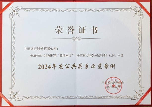 中信銀行“極地來信”整合品牌活動獲評中國公共關(guān)系協(xié)會年度公關(guān)示范案例