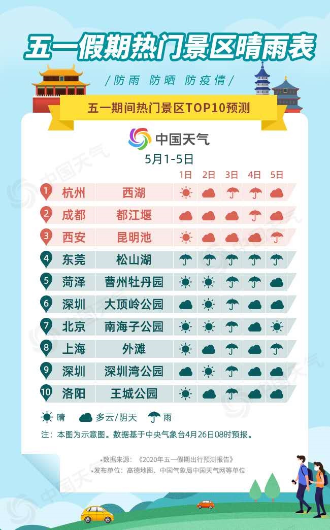 從自駕意愿來看,預計杭州的西湖風景名勝區(qū)、成都的都江堰景區(qū)、西安昆明池景區(qū)排名前三,市民自駕前往意愿較強,其中,進入都江堰景區(qū)需提前