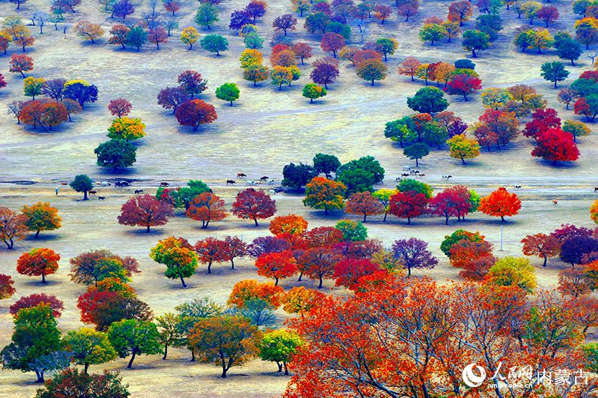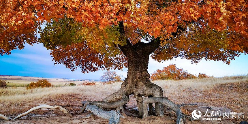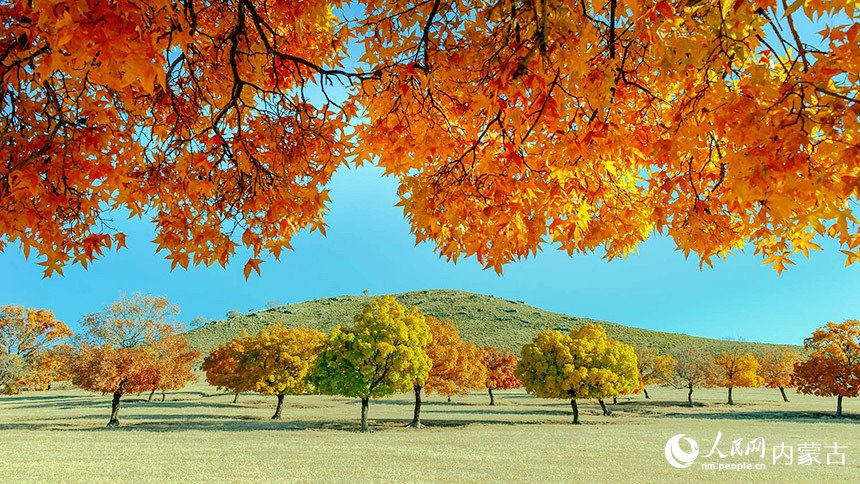 十月深秋,漫山紅遍。內(nèi)蒙古興安盟五角楓迎來最佳觀賞期。颯颯金風(fēng)拂過,五角楓林層林盡染,楓葉形態(tài)各異、五彩繽紛。秋日“楓”景美不勝收。(富麗娟、劉藝琳)