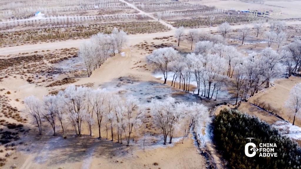 寒冬時節(jié),內(nèi)蒙古自治區(qū)鄂爾多斯市杭錦旗出現(xiàn)大面積的霧凇景觀,美不勝收。晶瑩剔透的冰晶掛滿樹梢,仿佛蒙上一層唯美的白紗。