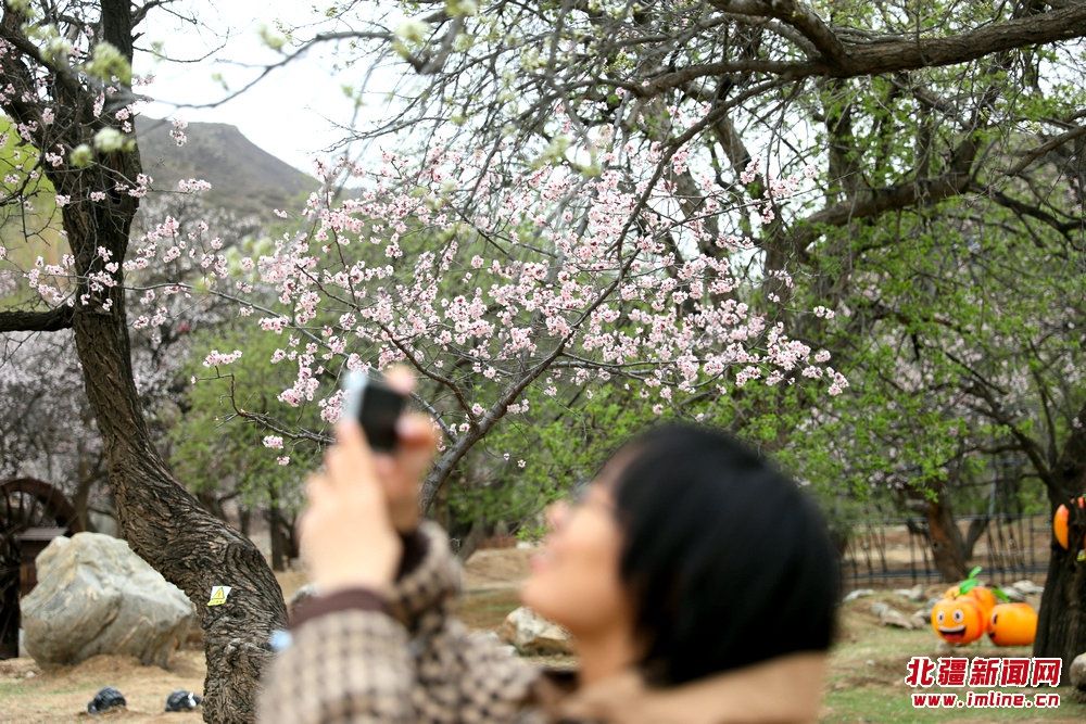 游人在烏素圖老杏園拍照打卡