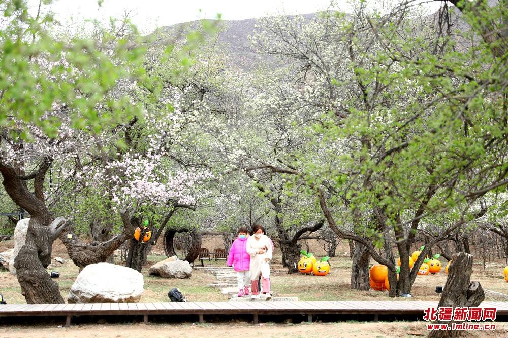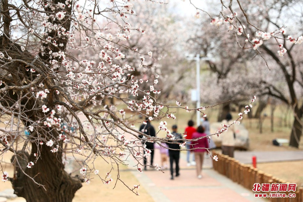 游人在烏素圖老杏園內(nèi)游園賞花