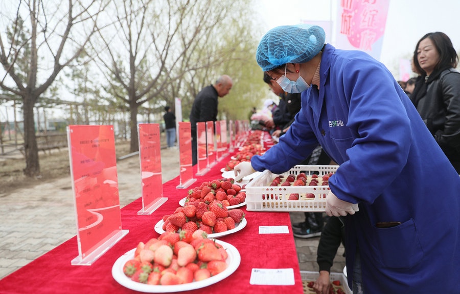 在此前的4月28日,本屆“草莓文化節(jié)”還舉行了草莓大賽,14家種植單位參加比賽。評(píng)委組根據(jù)草莓外觀、品種特性、果品品質(zhì)等多項(xiàng)指標(biāo)進(jìn)行綜合評(píng)選,最終評(píng)選出金獎(jiǎng)一名、銀獎(jiǎng)兩名、銅獎(jiǎng)三名。通過(guò)比賽,以“莓”為媒,線上、線下相結(jié)合,講述草莓故事、提升草莓品牌、傳播草莓文化,促進(jìn)草莓銷售,真正讓小草莓帶動(dòng)大產(chǎn)業(yè)。