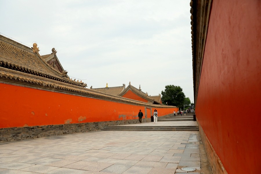 游客從貝子廟旁的臺(tái)階走過