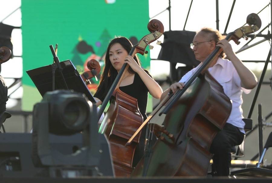 青山攬翠,林海歡歌。8月19日,內(nèi)蒙古烏蘭察布“森林之韻”蘇木山音樂(lè)季在蘇木山腳下的店子鎮(zhèn)盧家營(yíng)村繼續(xù)上演??罩幸暯窍碌囊魳?lè)季演出現(xiàn)場(chǎng),燈光璀璨,人頭攢動(dòng)。樹(shù)樂(lè)隊(duì)、翅膀VS呼哈、劉文天、巫啟賢、陳雅森等演藝人員和北京藝鯤交響樂(lè)團(tuán),為游客帶來(lái)一場(chǎng)場(chǎng)視聽(tīng)盛宴。