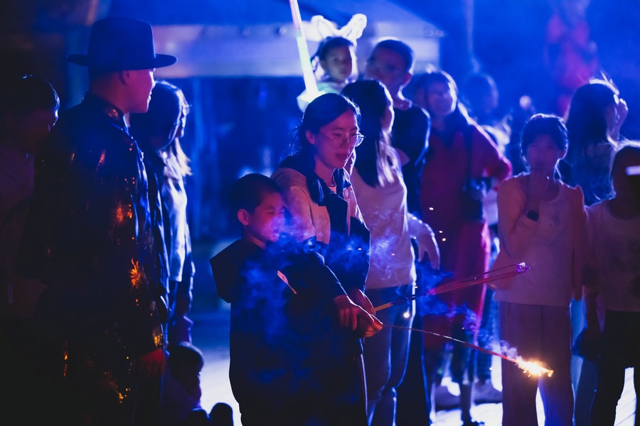 當(dāng)夜幕降臨,熊熊篝火點(diǎn)亮草原夜色,你也可以加入到狂歡的隊(duì)伍中,圍著篝火、拉起手,跳起歡快的安代舞,感受豐富多彩的文化娛樂(lè)活動(dòng),徜徉夜幕下草原歡樂(lè)的海洋。(林則志 攝影)
