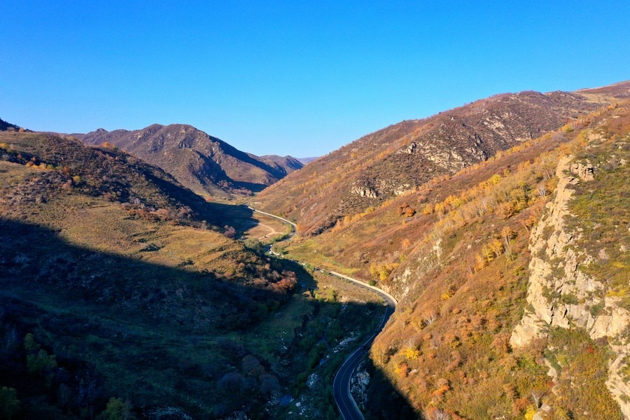 10月7日,呼和浩特大青山小井溝內(nèi),秋色五彩斑斕層林盡染。 北疆新聞?dòng)浾?nbsp; 張楊攝影