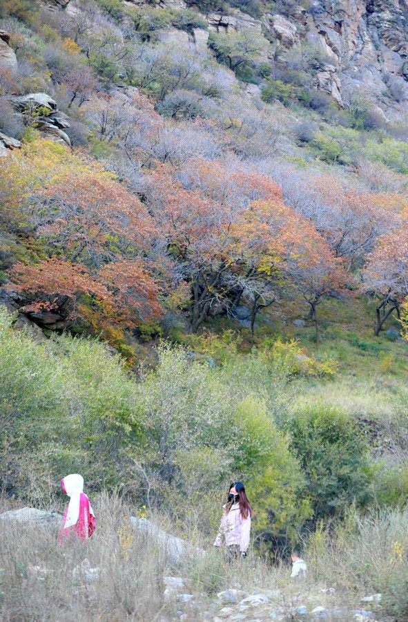 10月7日,呼和浩特大青山小井溝內(nèi),秋色五彩斑斕層林盡染,眾多游客身臨其境流連忘返。 北疆新聞?dòng)浾?nbsp; 張楊攝影