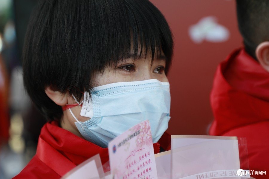 下午1點30分,附院醫(yī)療隊隊員與共同奮戰(zhàn)了60多天的區(qū)內(nèi)其他醫(yī)院隊員告別,乘車踏上回家的征程。