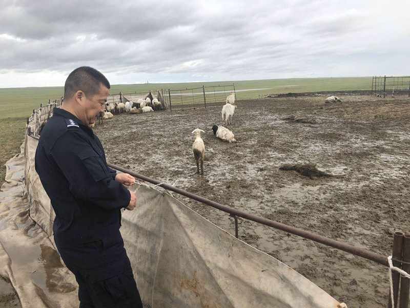 8月18日,巴音烏拉邊境派出所組織民警迅速救援轄區(qū)受災(zāi)羊群,及時挽回牧民財產(chǎn)安全。