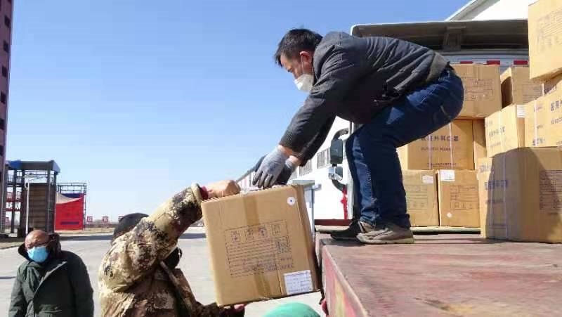 3月1日清晨,錫林郭勒盟至呼和浩特的后山地區(qū)飄著小雪,氣溫在零下10度以下,但是,風(fēng)雪擋不住來自錫林郭勒大草原的一片片愛。一輛17米帶掛卡車長(zhǎng)驅(qū)千里十多小時(shí),帶著錫林郭勒大草原的問候,連夜運(yùn)輸?shù)胶艉秃铺?,只為早點(diǎn)送達(dá)100萬只一次性醫(yī)用外科口罩。這輛卡車上掛著內(nèi)容為“祝青城人民早日戰(zhàn)勝疫情,錫盟公益助力呼和浩特市”和“洶洶疫情不可怕,齊心協(xié)力戰(zhàn)勝它”的條幅,表達(dá)“中國(guó)馬都”向“中國(guó)乳都”的真切問候。