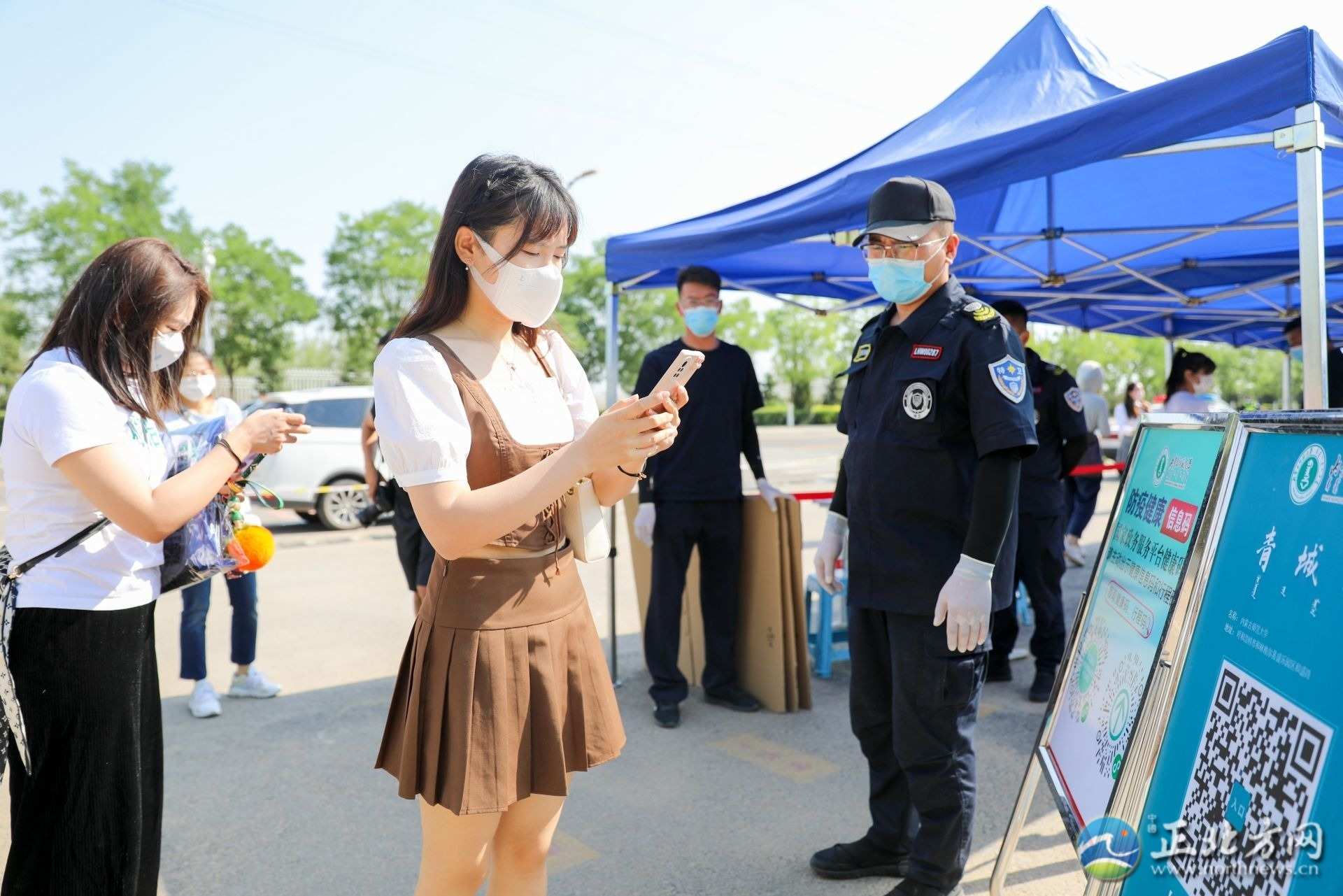 記者看到,在學(xué)校門(mén)口,學(xué)校設(shè)立了返校專用通道,核對(duì)信息、測(cè)溫、消毒、查看健康碼、行程碼和核酸檢測(cè)……返校學(xué)生佩戴著口罩正在按入校流程有序進(jìn)入校園,工作人員不斷提醒學(xué)生注意保持一米安全距離。進(jìn)入校園后,學(xué)生還需現(xiàn)場(chǎng)進(jìn)行核酸檢測(cè)。