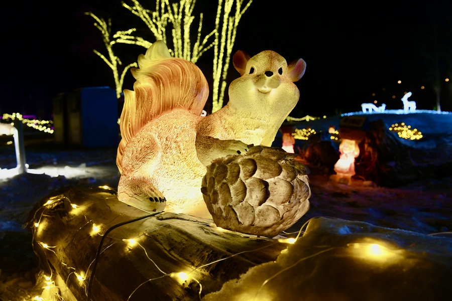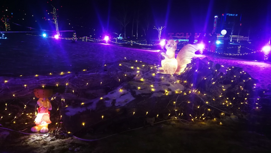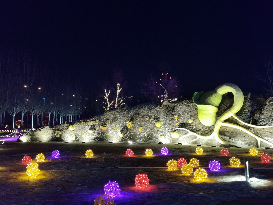 串燈、月球燈、抱樹燈、地插花、氣球燈點(diǎn)綴,搭配動(dòng)物造型燈,整個(gè)小草公園生機(jī)勃勃。“看那邊還有雪人”,小朋友的歡呼聲打破了夜晚的寂靜。
