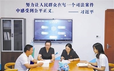 圖為黃日在辦案中心指導(dǎo)同事辦理案件。(陳志榮 攝)