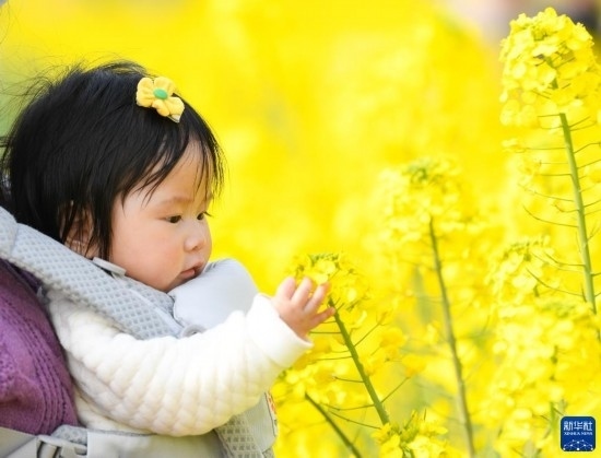 3月5日,在四川省崇州市道明鎮(zhèn),小朋友在油菜花田中玩耍。